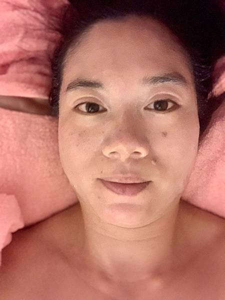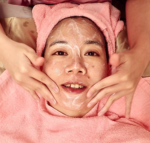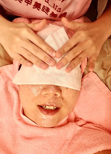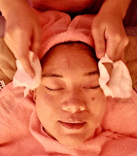 時間到後,美容師幫我卸除面膜(豆膜)。