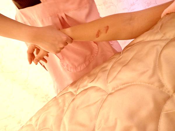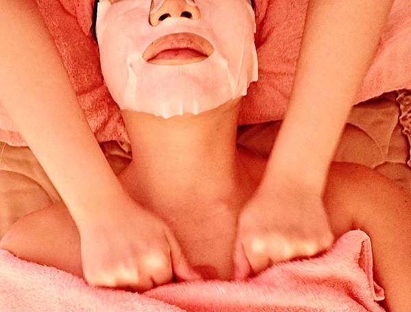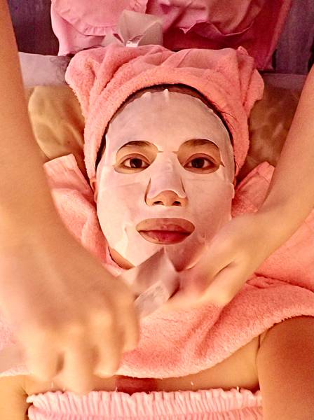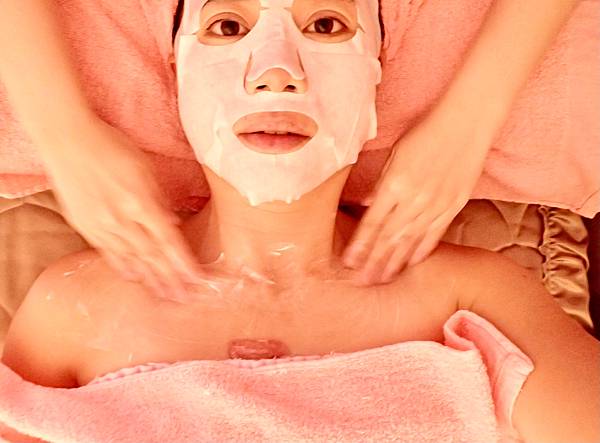 在敷臉時,美容師會利用時間幫客人做肩頸的紓壓!還有手部的紓壓。