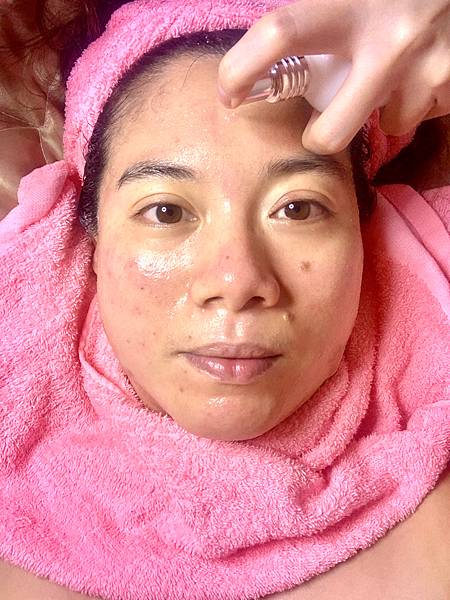 洗臉跟卸妝後,美容師先幫我做化妝水的步驟!