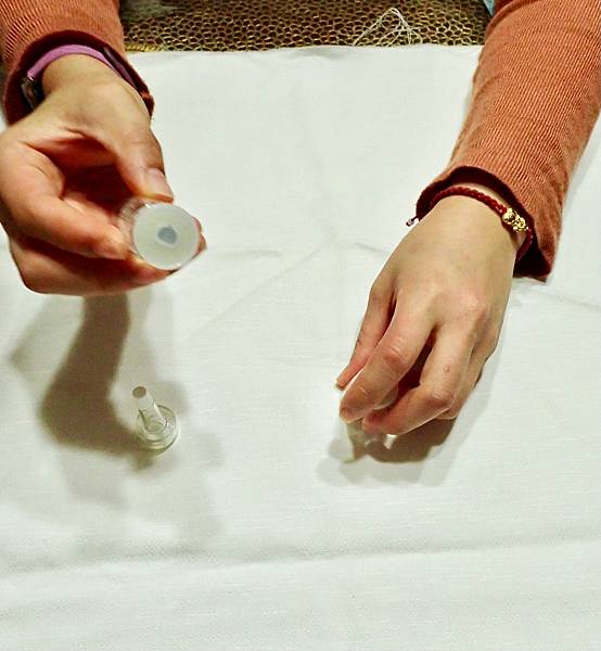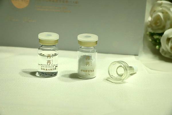 這個安瓶很特別,需要2瓶組合在一起一起用,將液體晶露倒入雪晶瓶中,輕輕搖至溶解,靜止3-5分鐘,使用滴管低於臉部肌膚塗抹輕拍至吸收。