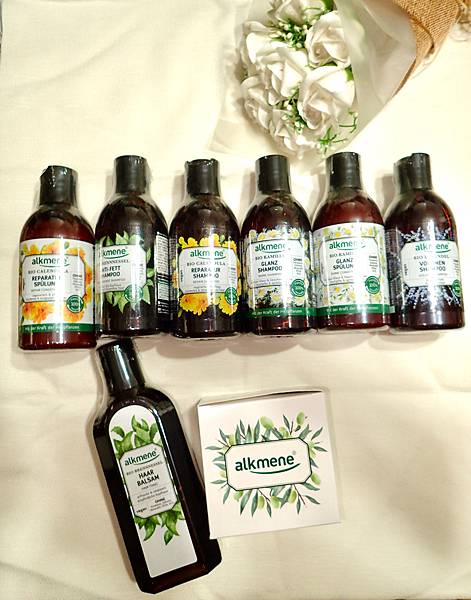 還有育毛與潤髮,全系列都推薦alkmene歐珂蔓,稀疏頭髮可以使用大蕁麻頭皮育毛精華,強化髮根,健康又豐盈、亮麗的頭髮,頭皮粉重要,受損頭髮髮絲使用金盞花修護潤髮乳,粗乾的頭髮髮絲,使用洋甘菊亮澤潤髮乳。