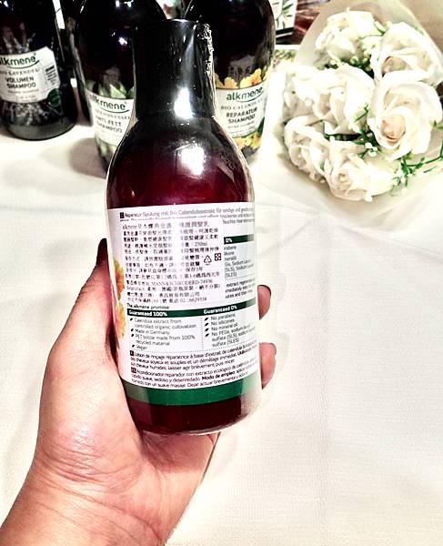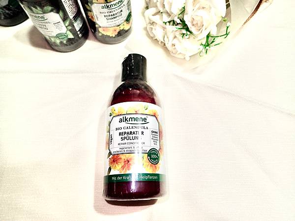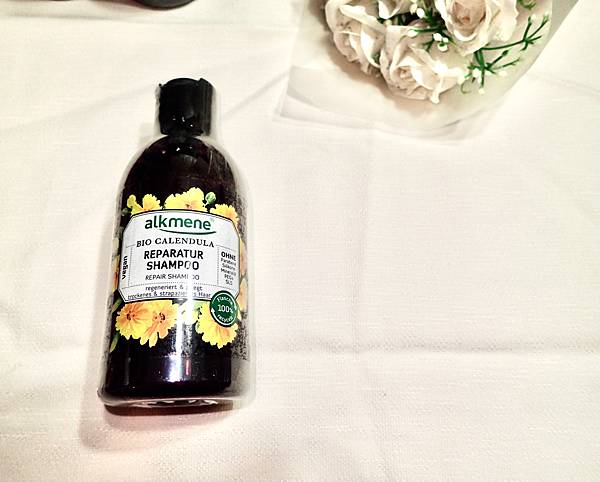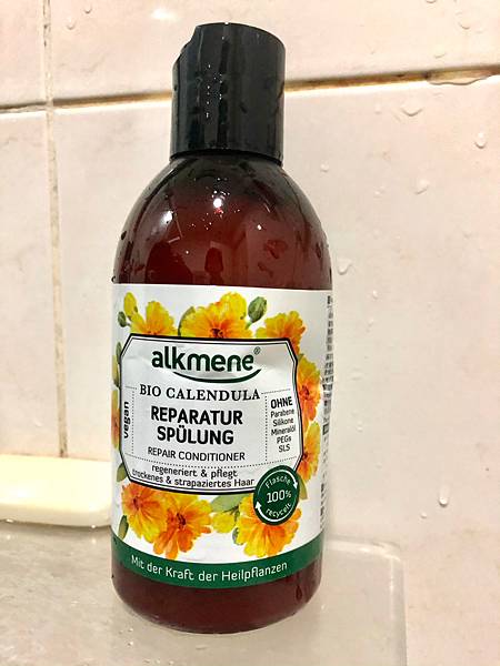 alkmene歐珂蔓洗護系列-金盞花修護洗髮露與金盞花修護潤髮乳,真的超適合我這個受損頭髮使用,洗後真的覺得舒服,頭髮也豐盈。