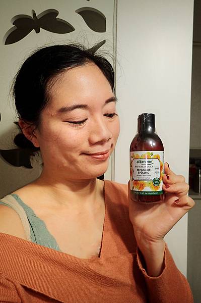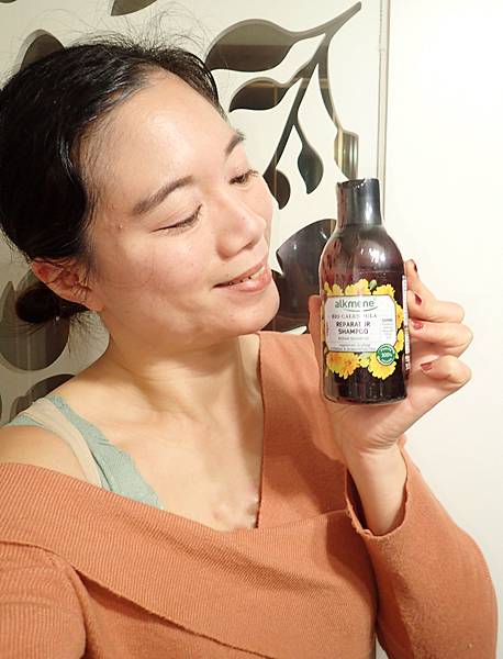 因此Jessica適合使用alkmene歐珂蔓的脆弱受損型,使用金盞花修護洗髮露洗頭。