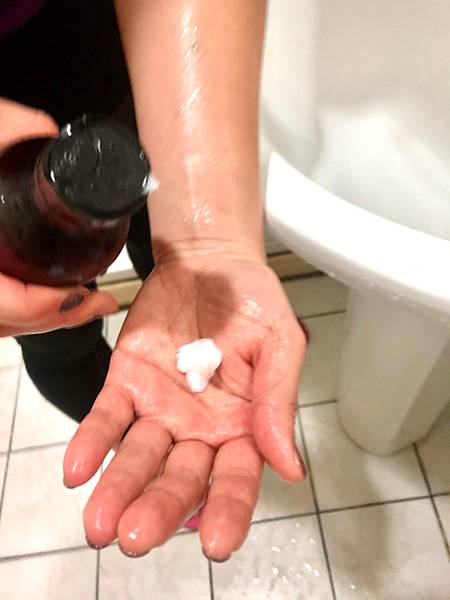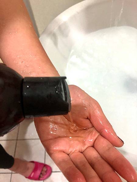 再用清水沖洗乾淨,沖洗要把洗髮露沖洗乾淨,洗到水變輕透,alkmene歐珂蔓的金盞花修護洗髮露,清水很好清洗,而且乾淨。