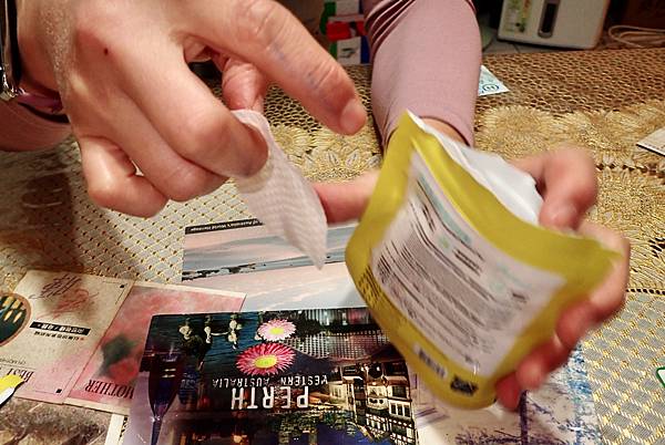 撕開,把它打開,取出一張。
