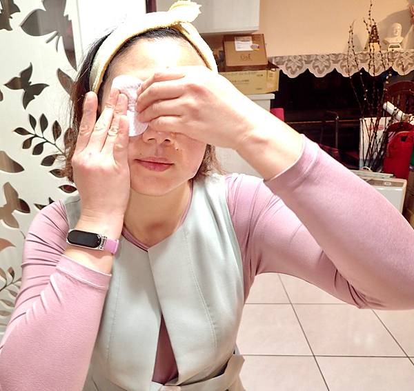 Jessica卸除眼部唇部彩妝,都會先採濕敷的方式。