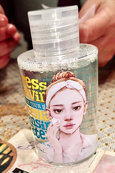 在來就是卸除臉上的彩妝了,卸除彩妝,Jessica會使用卸妝水卸除。