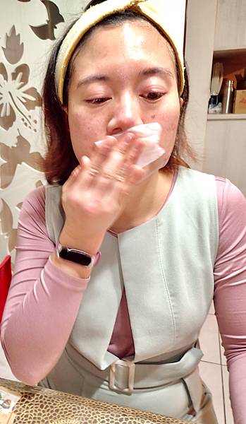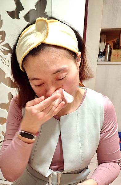 3-5秒在輕輕擦拭乾淨彩妝(眼唇)。