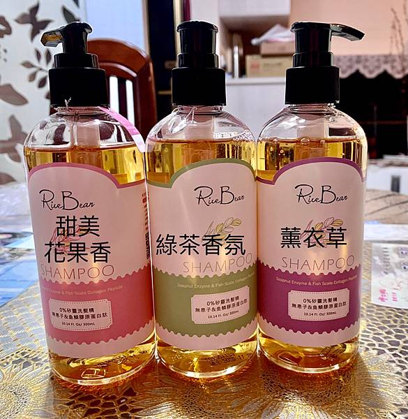 米豆richbean因此Jessica購入四種香氛裡的三種香氛,(甜美花果香氛、薰衣草、綠茶香氛)0%矽靈無患子&魚鱗膠原蛋白洗髮精。