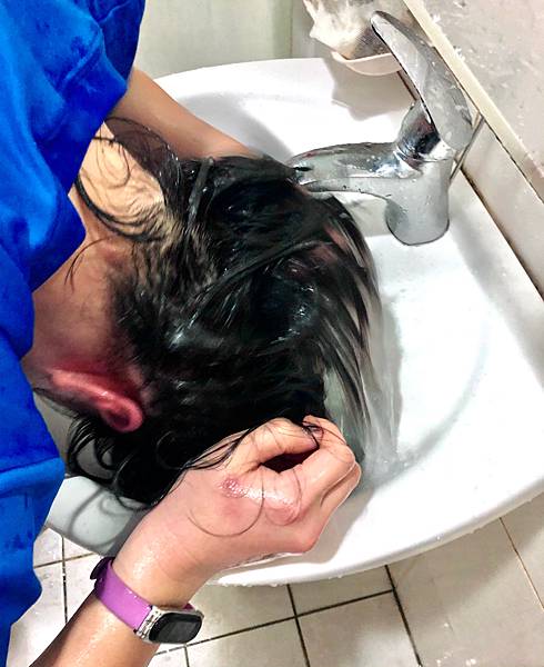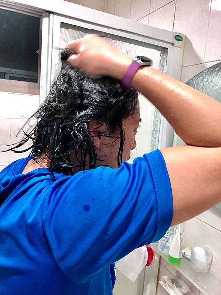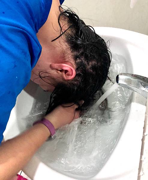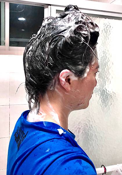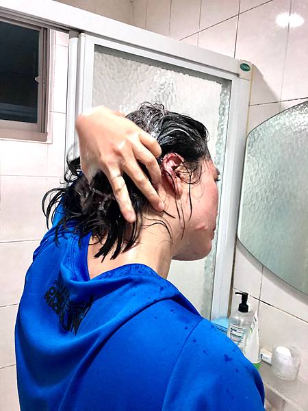 Jessica會很確實的沖洗頭髮,會沖兩次,確認水裡沒泡泡了。