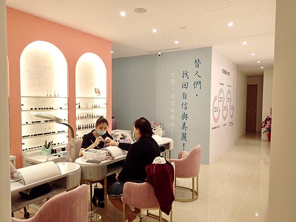She shines私藏空間美容課程很多,也有美甲、美睫、霧眉、霧唇的服務,內部空間超大,還有很多可以拍網美照的場景。