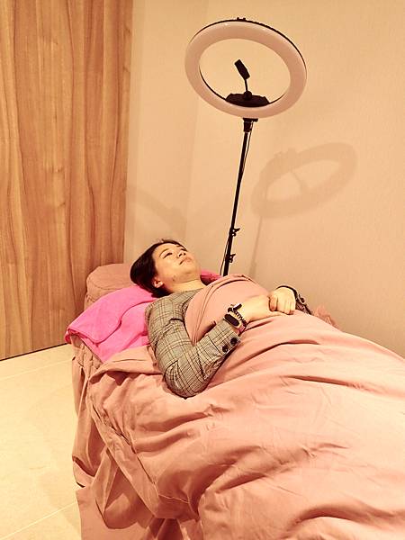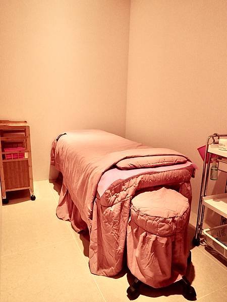 She shines私藏空間,美容室一張床與乾淨的空間,先躺上床後,美容師會幫你蓋上被子,把頭髮整理好。
