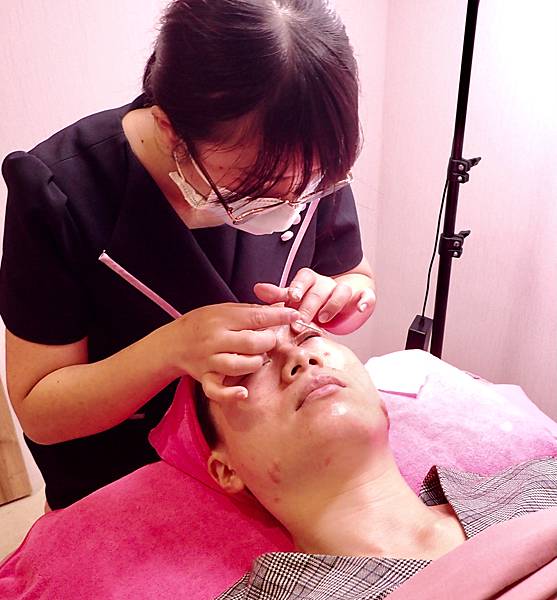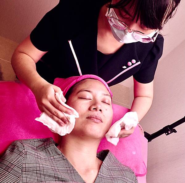 導入原液之前,美容師會幫您卸除臉上的彩妝。