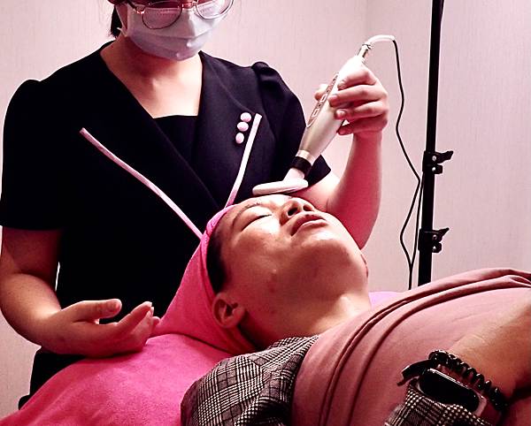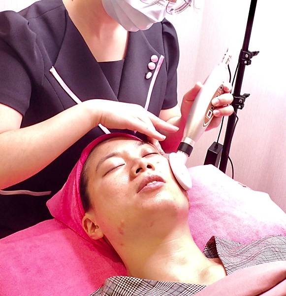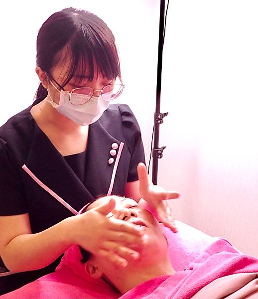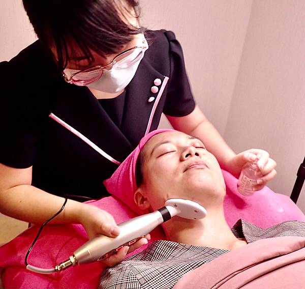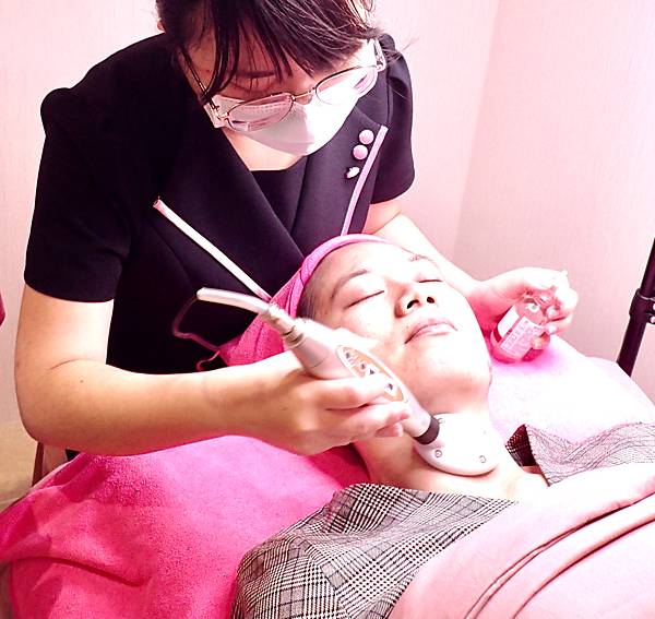 美容師先從脖子開始導入到臉上,細心導入四個原液。