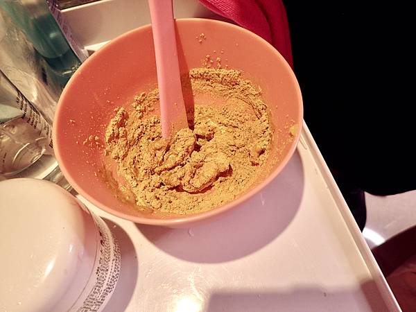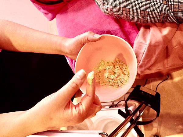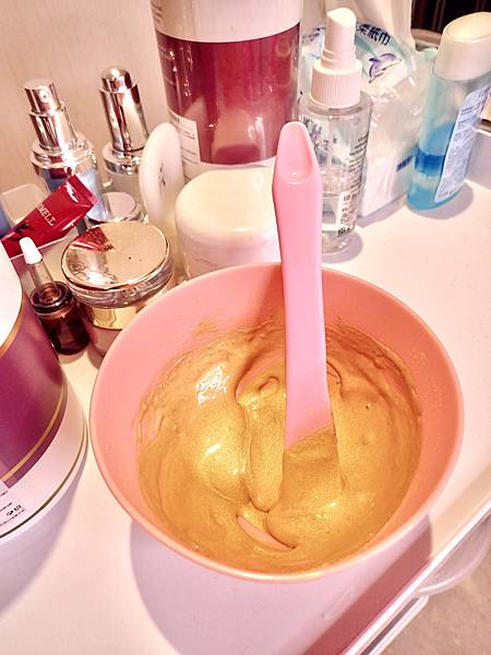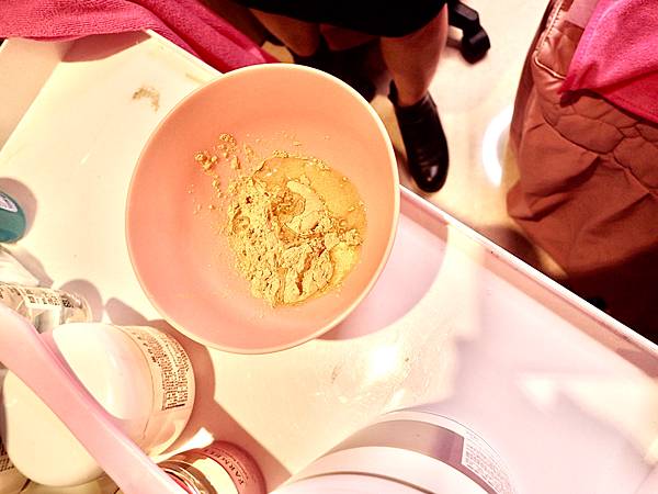 美容師說這個黃金面膜很高級是純黃金唷!需要加入化妝水去調製成軟膜。