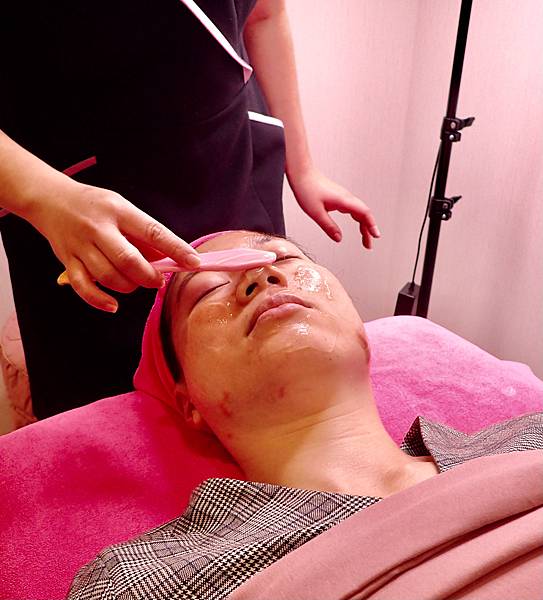 最後美容師在時間到後幫妳卸除臉上的黃金軟膜。