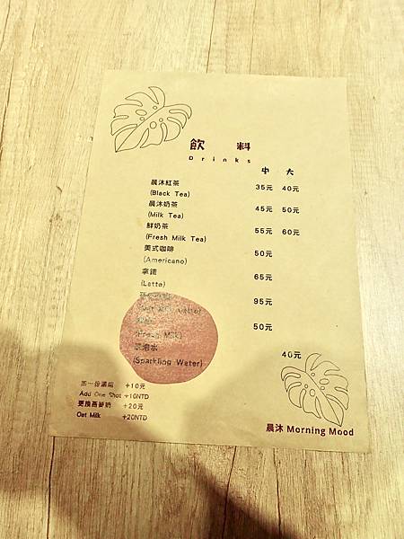 飲料部分,因為我比姐妹先到店裡,因此晨沐早餐跟我推薦了這杯飲料,「燕麥奶拿鐵」,她說風味很特別,因此我就覺得要點這杯了。