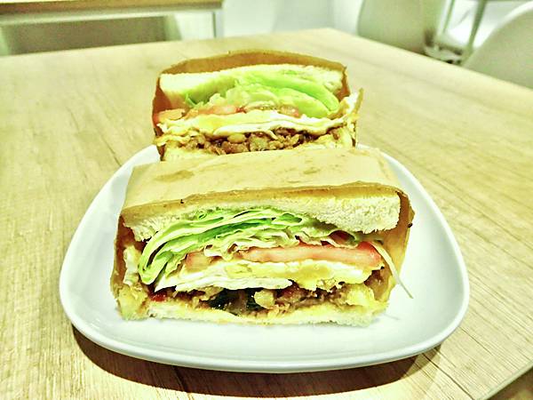 這個三明治真的很好吃,高麗菜很多,打拋豬很嫩,不會太硬,打拋豬的香氣配上吐司的口感很好,高麗菜也可以中和打拋豬,讓我一口接一口半個打拋豬三明治。