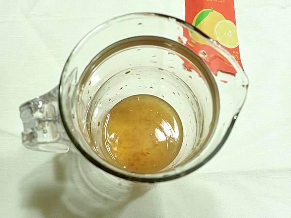 回到台灣後,拿出來泡,發現味道真的很棒,很喜歡這種柚子,甜甜酸酸的感覺,還可以吃到果肉。