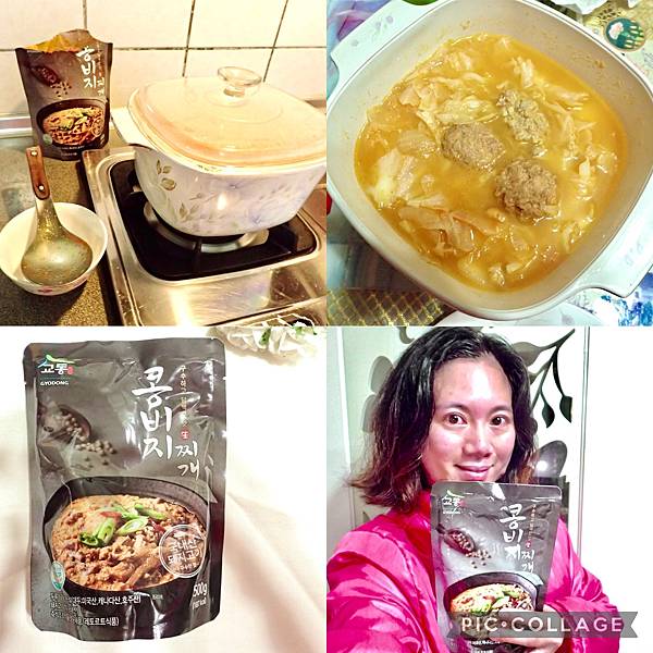 連不會下廚的我,都可以完成簡單的湯料理,只要準備一個鍋,還有「韓國豆渣鍋」,及想要吃的配菜,像Jessica就準備了高麗菜跟獅子頭。