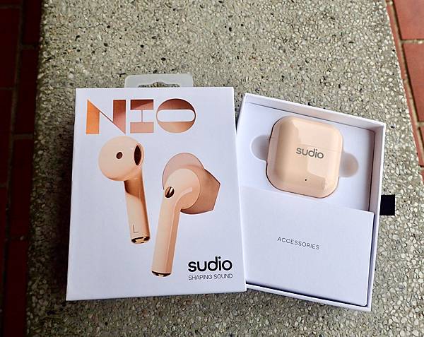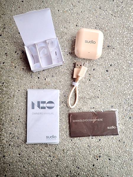 一收到就帶著開心的心情開箱SudioNIo沙漠色(NIO SAND)無線耳機,Jessica還另外買了清潔組,可以清潔耳機。