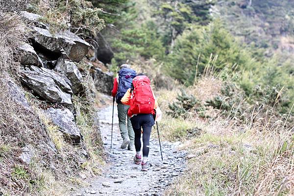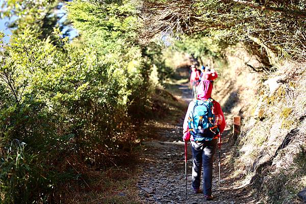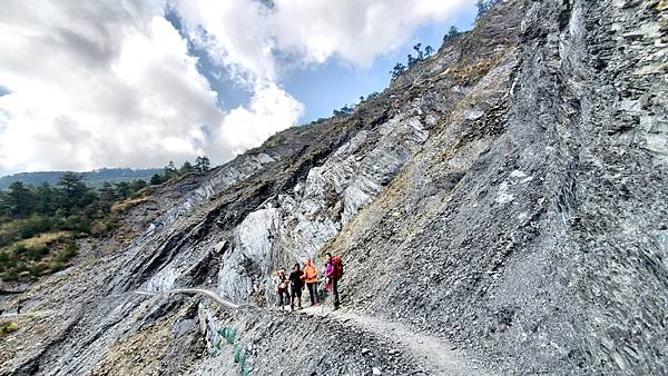 回去的路,因為登山鞋完全壞了,還有謝謝團員借我一雙,跑馬在穿的母子鱷拖鞋,真的超好走、超好穿,穿拖鞋下山。