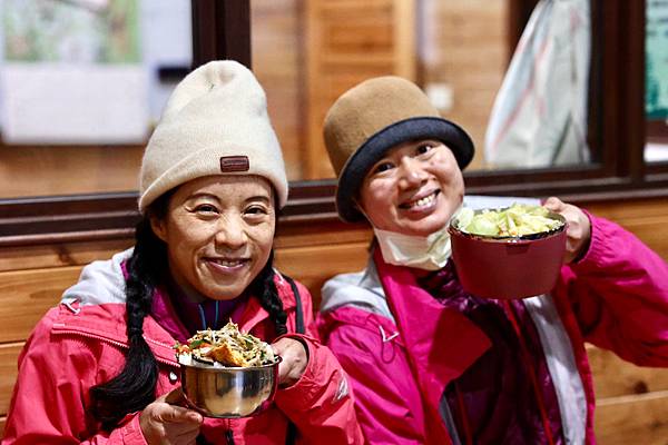 第一天的路真的不算難走,晚餐吃「天池山莊」協作準備的飯菜,吃完後早早休息,因為第二天還要早起摸黑上山。