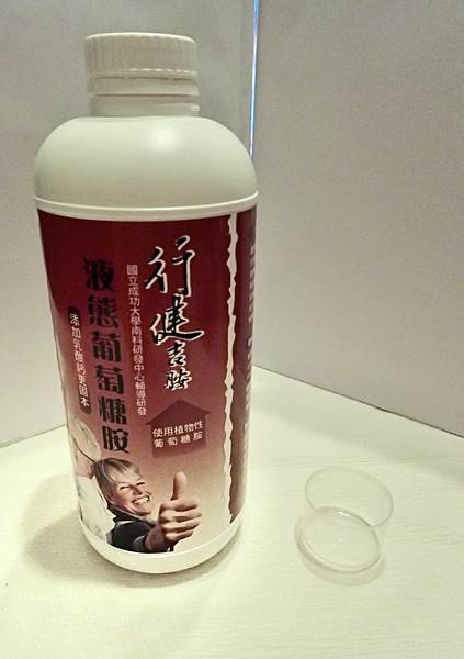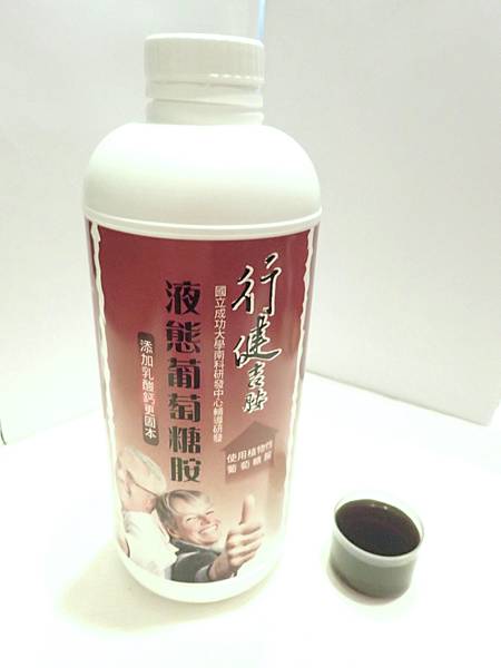 這個產品就是「液態葡萄糖胺液」,這隻「液態葡萄糖胺液」是「澺昶萊有限公司」與「國立成功大學」一起研發。