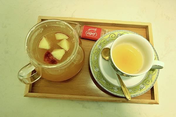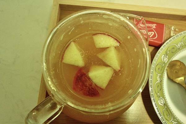 用新鮮的水果下去熬煮,還加入水果泥,水果香氣濃郁,樂圓用心不是 用茶包泡,而是用新鮮水果煮茶,水果也可以吃,熱熱的酸酸甜甜,好滋味,在配上水果果肉。