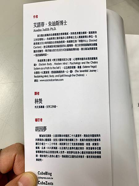 這本書真的把人體「七大脈輪」講得很仔細,而且從「東方」轉變成淺顯易懂的語言「西方」話,用平白的語氣讓大家更認識「脈輪」,「脈輪」是屬於東方的東西,而且要學習要透過「上師」。