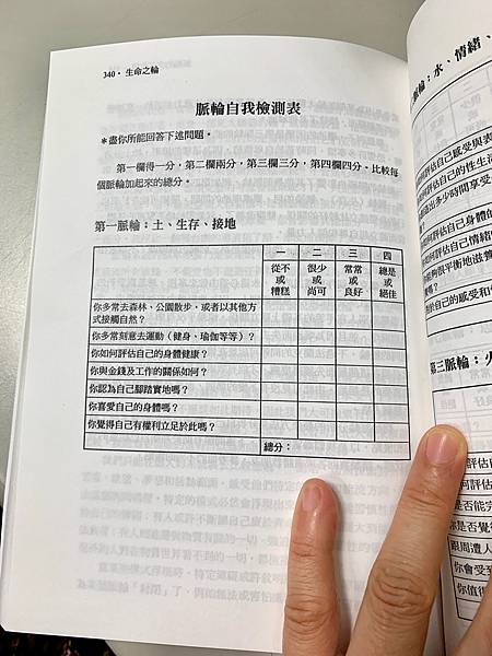 我們除了透過這本書來做「脈輪」的修行,也可以透過這本書來了解自己哪一部分的脈輪需要加強,哪一個脈輪太強大,如何去做中和,書中有測驗題,讓妳了解自己的脈輪,利用分數,來評估。