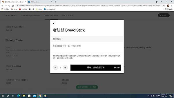 又加上電視廣告打得很兇,又有朋友在接新北市的Uber Eats的訂單,她自己也推薦,因此就因為這樣選擇Uber Eats這個平台來處理中餐.