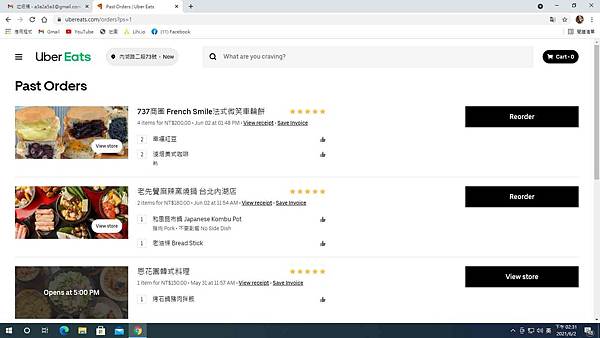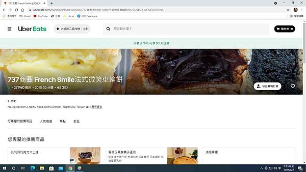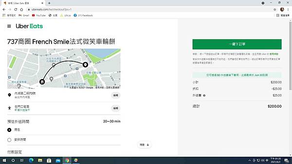 現在Uber Eats推出免運費的活動到2021年6月30日
