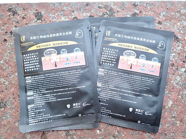 廠商說這個面膜是碳與金箔做主成分,保濕面膜,Jessica心裡就想說,哇!這家廠商好厲害,我也沒聽說過哪一款面膜,用「碳」與「金箔」做面膜,太特別了,因此很期待收到這款特別的面膜。
