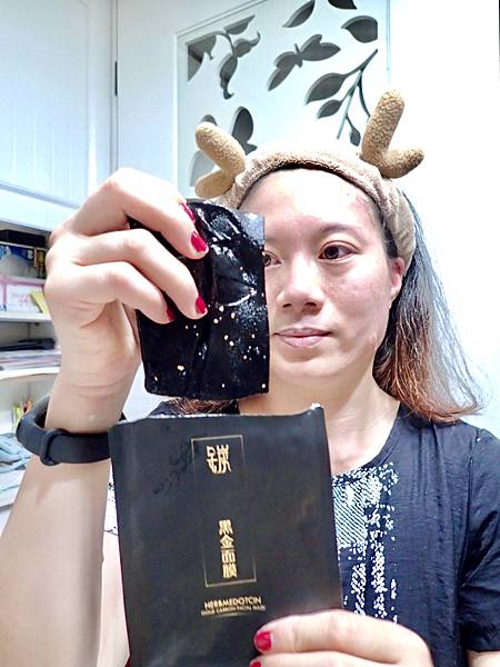 想要來好好享受敷「HERBMEDOTCIN-多胺生物碳保濕修護黑金面膜」,感受「碳」與「金箔」在臉上肌膚的感受。