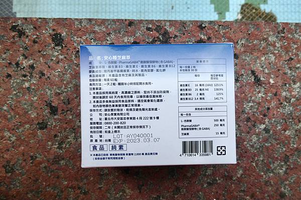 嚴選日本專利GABA 250mg、好眠色胺酸500mg、濃縮萃取芝麻素 15mg,四大關鍵輔助維生素的E、維生素B3 B6 B12。