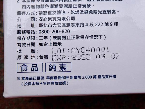 同時投保華南產物保險新台幣2000萬的產品責任險。
