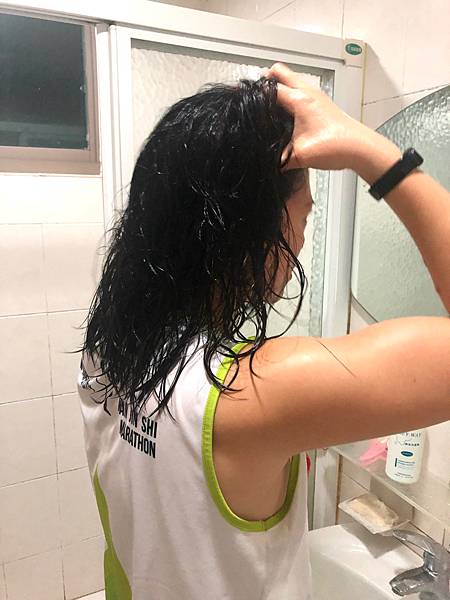 洗完頭後,使用「麗蔻悠活髮根頭髮調理霜」。