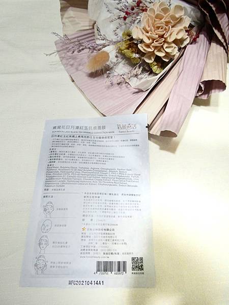 日月潭紅茶又稱紅茶中的紅寶石,摩洛哥鳶尾花萃取:活化潤澤、淡化紋路;無花果萃取:預防肌膚老化、顯著維持肌膚彈性;面膜布還是「竹纖維」,萃取竹子內部薄膜以獨特抽絲紡織風技術而成,柔軟、服貼、高透氣,100%可生物分解的材質,兼具實用與環保。