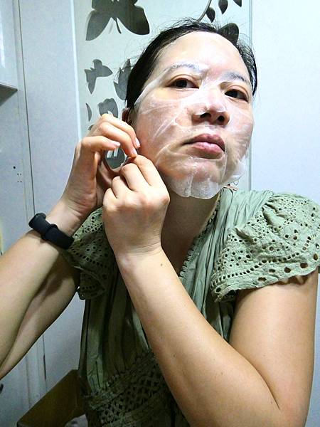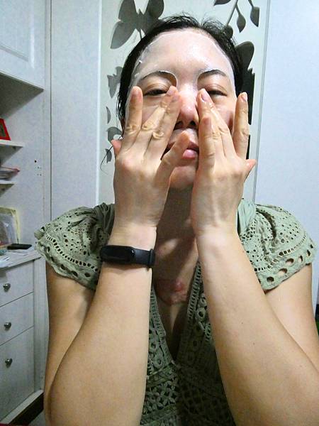 5.在用手指腹輕輕按壓面膜。
