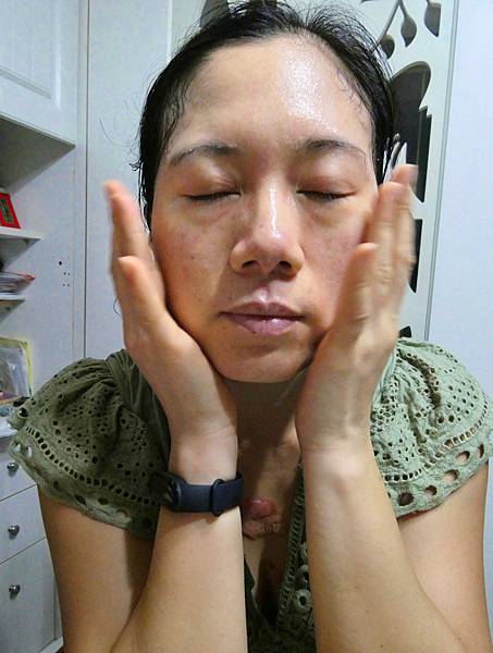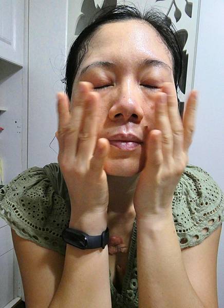 6.將臉上剩餘精華液,輕拍按摩至吸收即可。