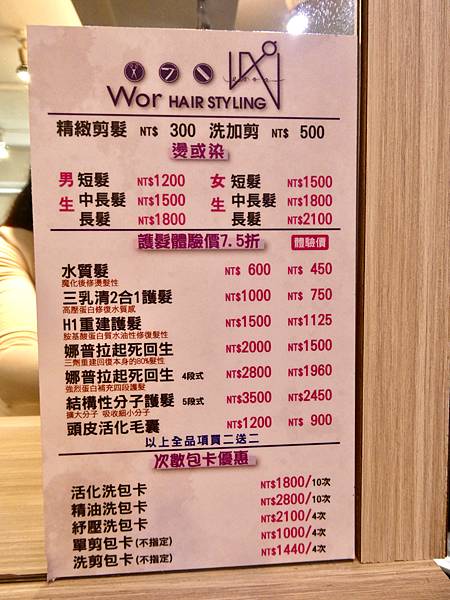 這次Jessica以護髮、頭皮養護為主,這間「worhair信義店」目前新開幕有一些優惠,女,染、燙不分長短,1500元,男,染、燙,不分長短1200元,還有其他優惠 ,營業時間:中午11:00-晚間20:00。