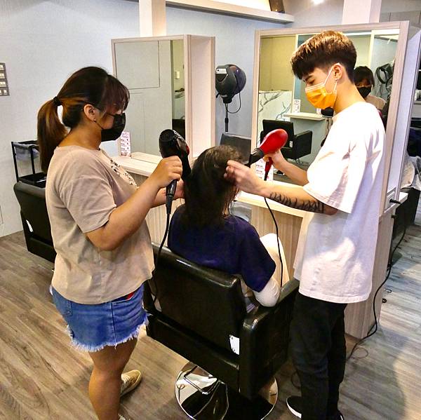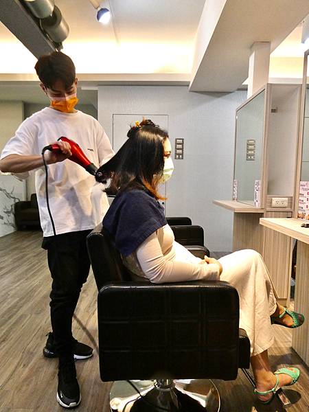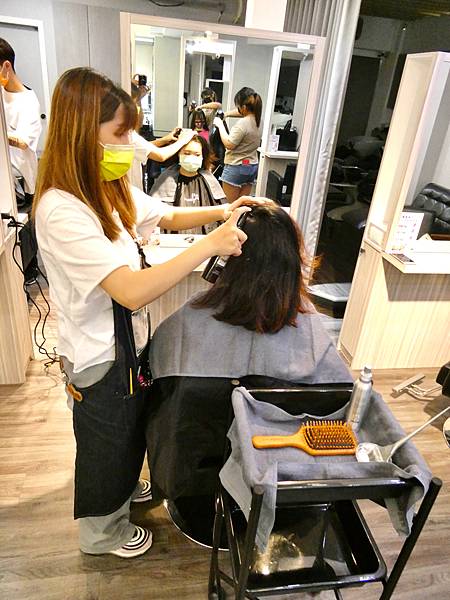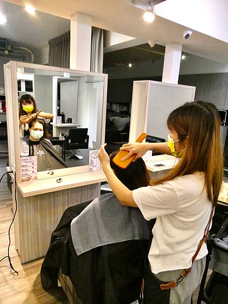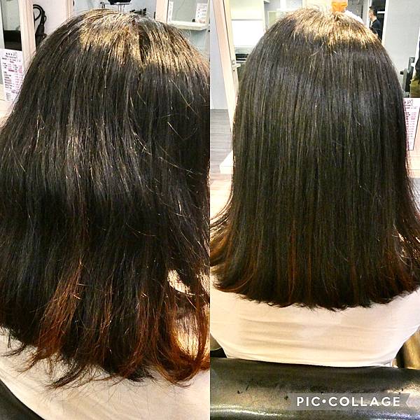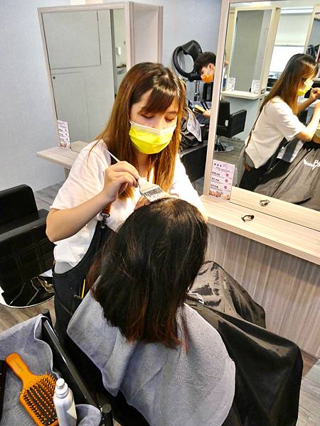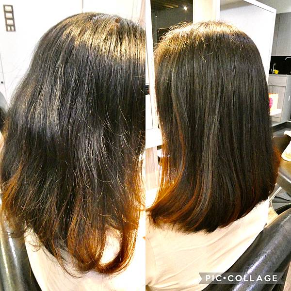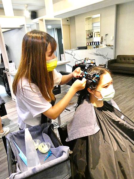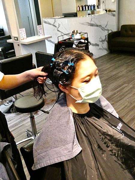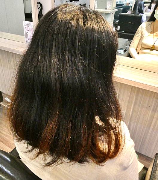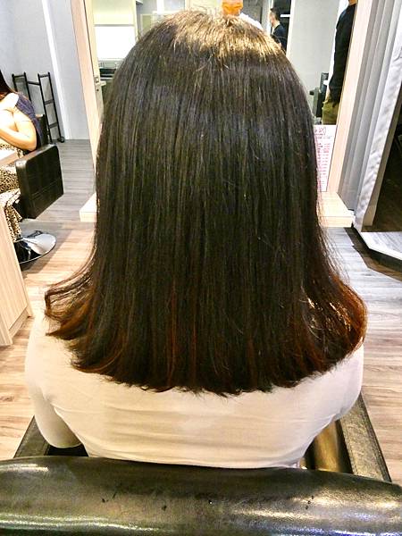 設計師看完頭髮之後,就說我們頭皮只有一種,護髮幫妳做「H1重建護髮」幫妳恢復髮尾的水嫩,補充髮尾的水。