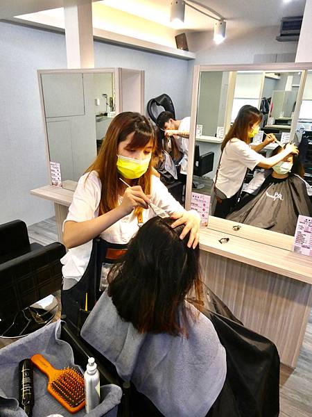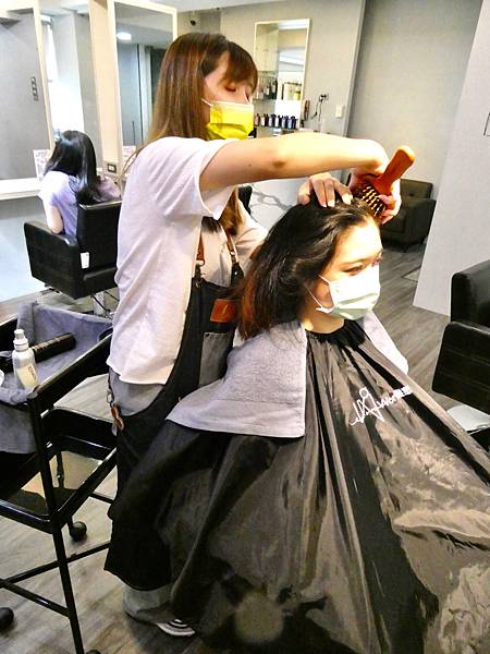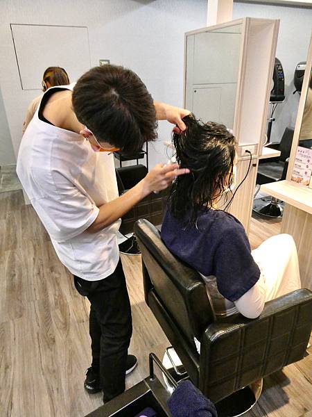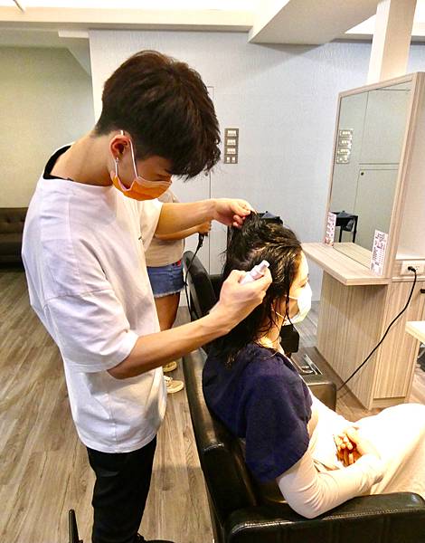 一進髮廊之後,設計師就很耐斯、很耐心的看Jessica的頭髮狀況,Jessica事先說要「護髮跟頭皮養護」,看設計師怎麼幫我處理頭髮。