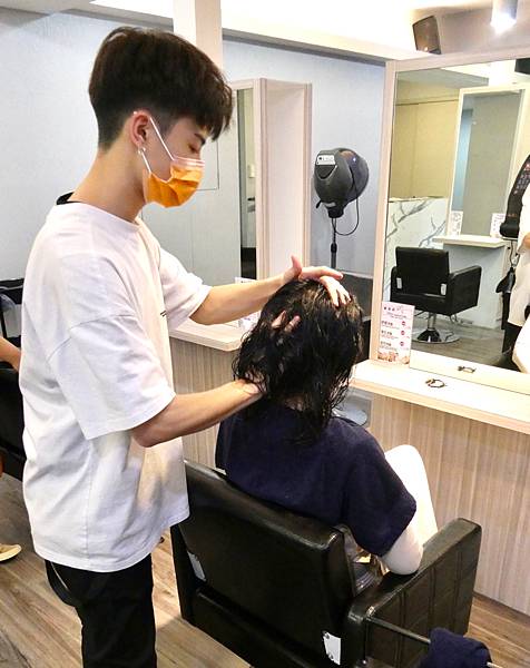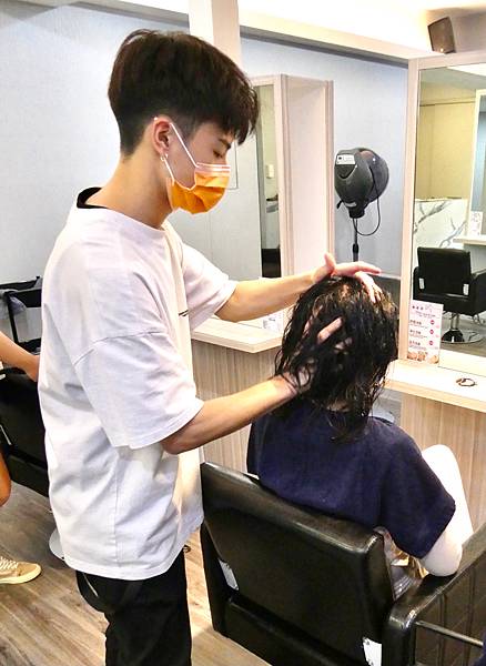 洗髮前先做「頭皮活化毛囊」、洗髮(控油一次、保濕一次)、「H1重建護髮」。