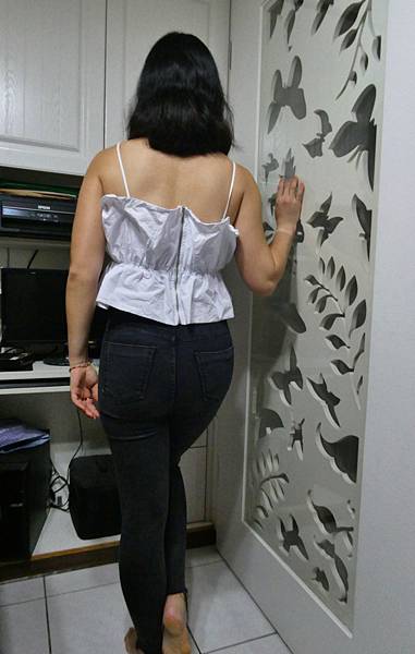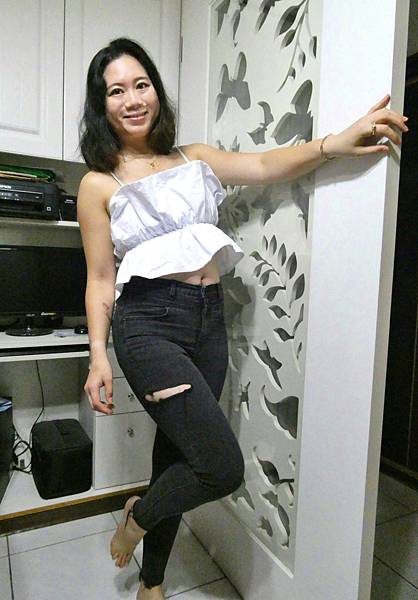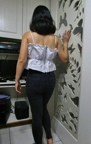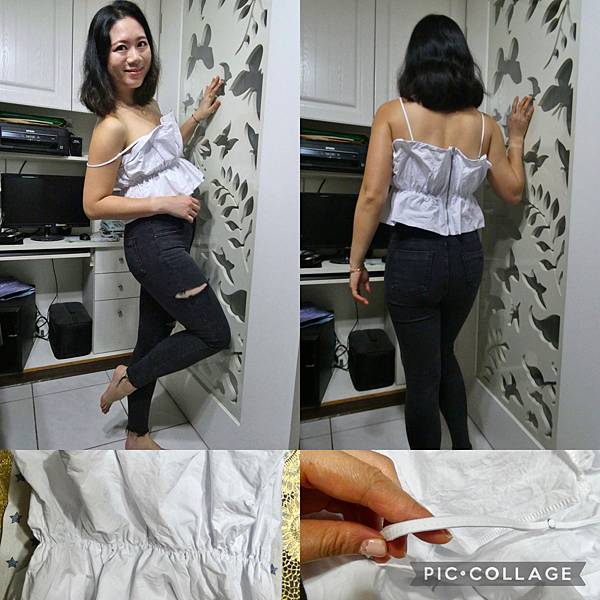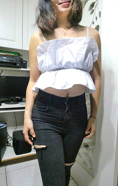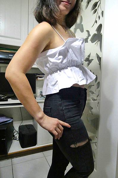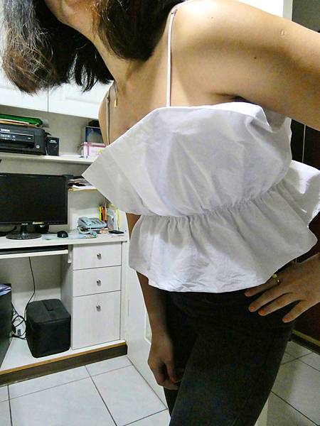 這件就是經過「簡曉育老師」闆娘推薦Jessica入手的上衣,「時尚米蘭❤️立體剪裁-細肩帶上衣」肩帶可調。