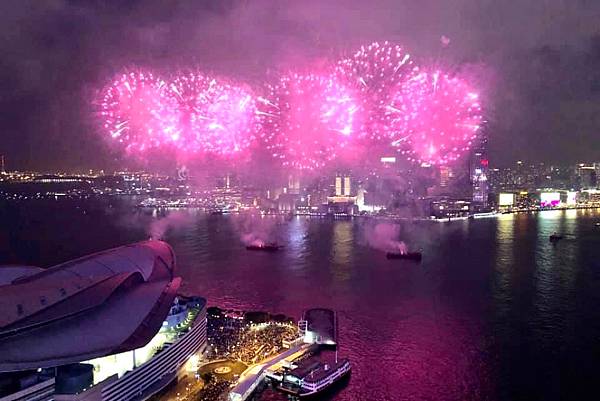 前景帶到維多利亞港,有前景也有煙火,真的是視覺的享受。