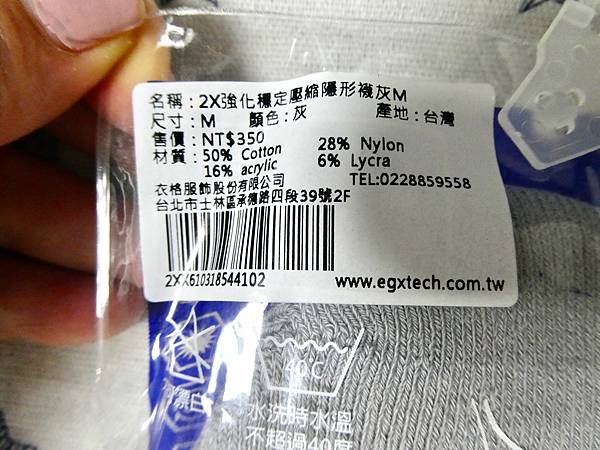 Jessica找上了「EGX衣格服飾運動機能系列」看到「2X強化穩定壓縮隱形襪」,這雙襪子有很多特點「X型繃帶設計」、「襪底止滑膠條」、「3D人體工學設計」、「厚底設計」、「耐用久穿」、「除臭襪」、「機能運動襪」、「加壓保護」、「吸濕排汗」,有三種顏色灰色/桃紅/黑色。