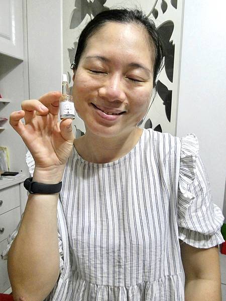 1.早上先清潔肌膚(臉部肌膚),化妝水之前使用「沛碧泉-5%富勒烯全效修護安瓶」,再使用化妝水2次,最後乳液、隔離,後續上妝。