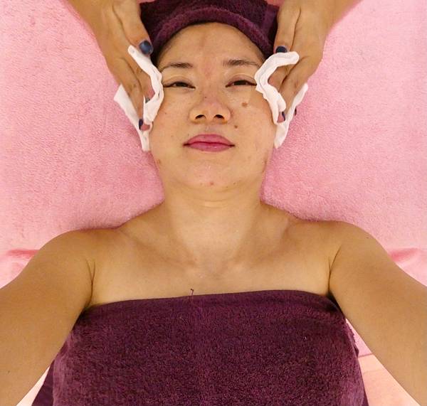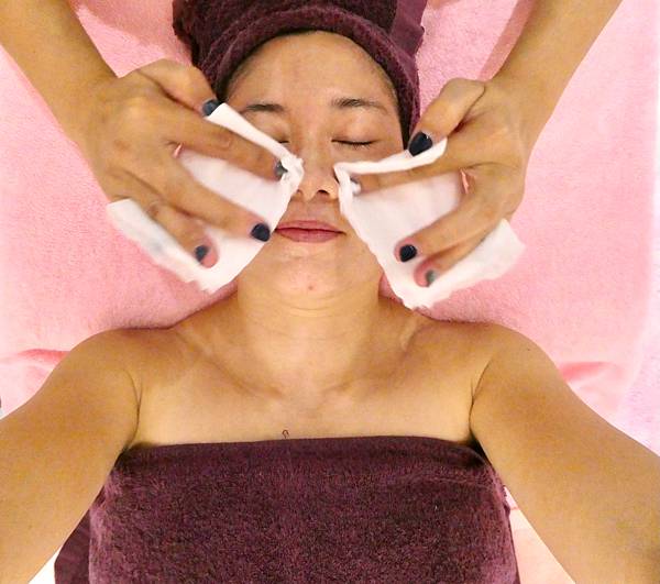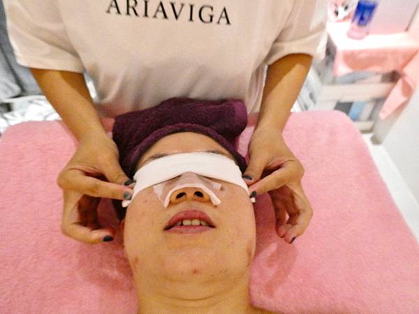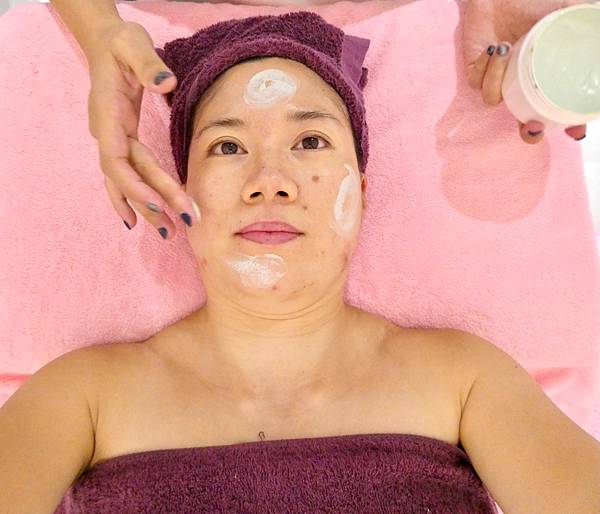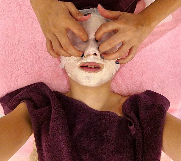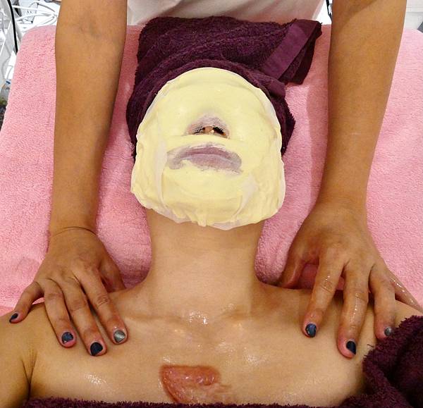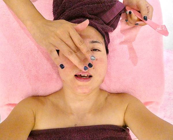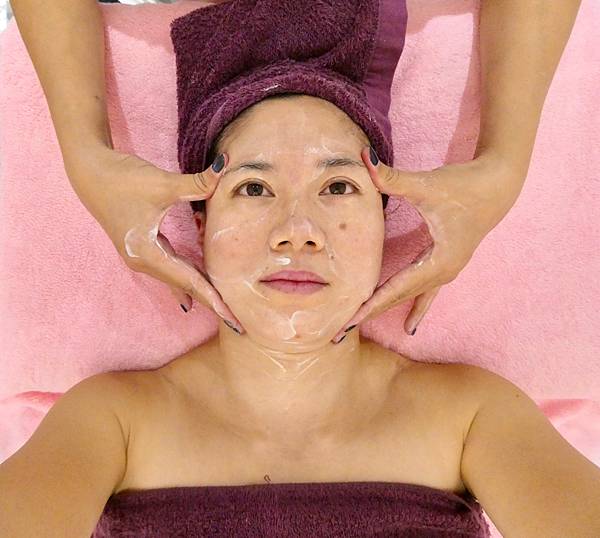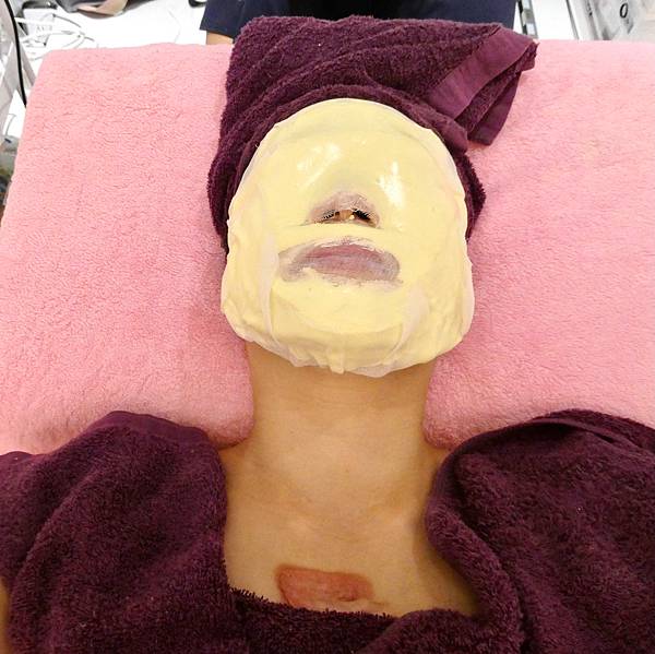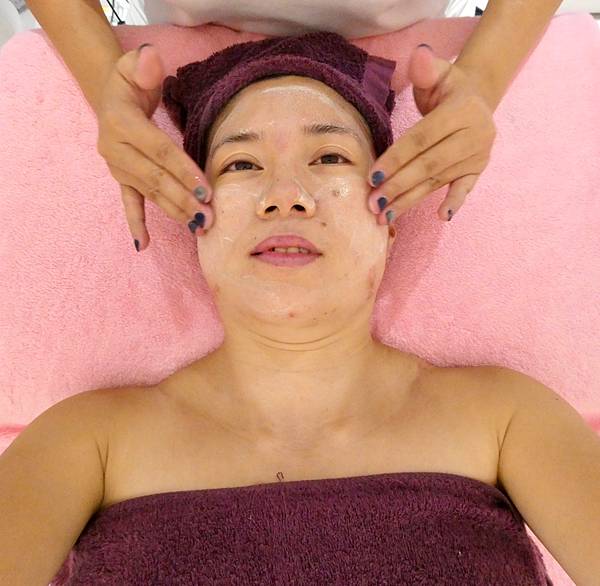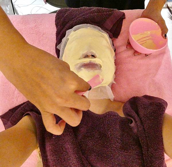 第四步驟:美容師幫Jessica敷面膜,面膜也是依課程是否用到面膜唷!美容師幫我敷兩層面膜。